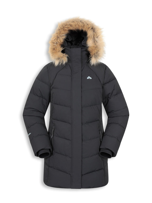 The EMS Isla II Women’s Long Down Jacket, crafted in a longer length, is the perfect addition to your winter wardrobe. Offering superior warmth with down fill and laboratory-tested to endure temperatures as low as -35°C. Featuring a detachable faux fur hood trim and water-resistant material, this jacket offers versatile styling options while keeping you dry and protected in wet weather. Zipped pockets keep your essentials safe and easily accessible whenever you need them!