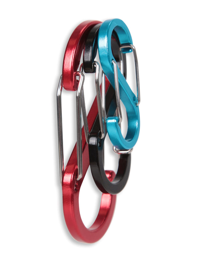 This Set of Karabiners is a handy addition to any backpack. In 3 different sizes, the karabiners are perfect for attaching your tools to your belongings when you're exploring the great outdoors.