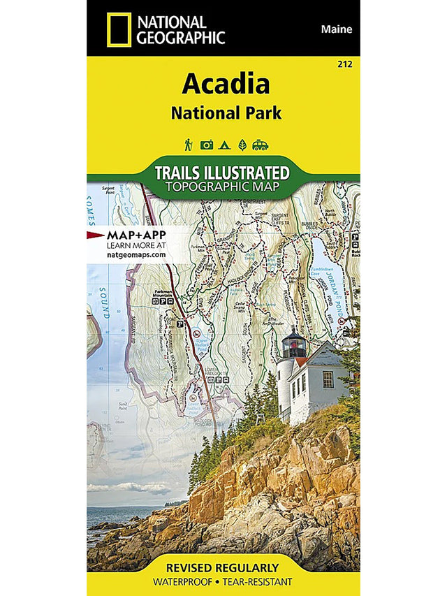 National Geographic's Trails Illustrated map of Acadia National Park is designed to meet the needs of all visitors who wish to explore the islands and bodies of water of this national park. Expertly researched and created in partnership with the National Park Service and others, this map features over 120 miles of trails, ferry routes and key points interest. The print version of the map also includes insets of Mount Desert Island, Schoodic Peninsula and Isle Au Haut. The print and online maps both include trail charts for each of these 3 areas with area descriptions, distances, difficulty ratings and trail features to help you choose the trail most suitable for your activity level and areas of interest. In addition to the unparalleled trail information, the map also covers the historic carriage road system that covers large parts of Mount Desert Island. The map base includes contour lines and elevations of the mountain and contours of all the rivers, lakes, sounds, ponds and other bodies of water that are within and surround the park. The map also display many recreational features and other points of interest, including: visitor centers, campgrounds, trailheads, boat ramps, interpretive trails, swimming areas, museums, lighthouses and ferry launch points. Every Trails Illustrated map is printed on "Backcountry Tough" waterproof, tear-resistant paper. A full UTM grid is printed on the map to aid with GPS navigation. Other features found on this map include: Acadia, Blue Hill Bay, Cadillac Mountain, Deer Isle, Frenchman Bay, Isle Au Haut, Mount Desert Island, Schoodic Peninsula, Swans Island.